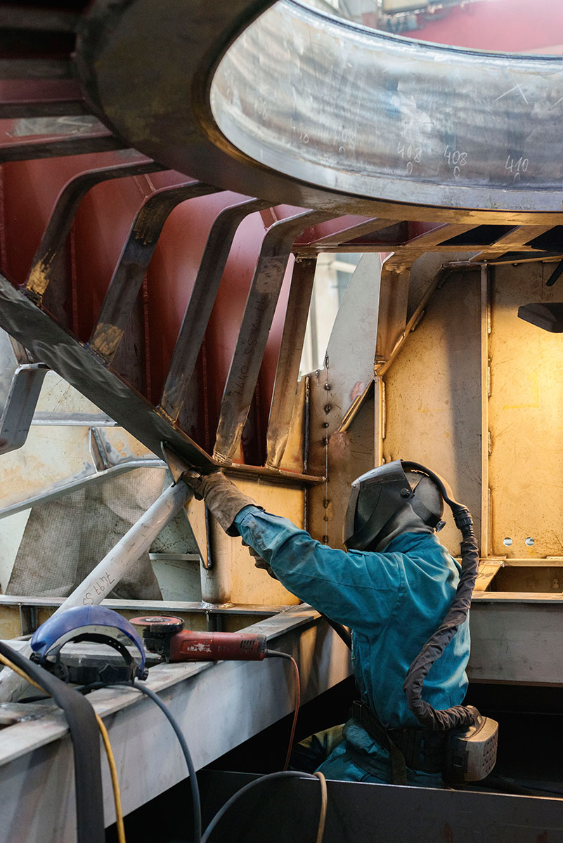 In her series “Bodies of Work,” Katharina Gruzei spent over a year and a half photographing the last remaining shipyard in Austria. A recurring topic in her artistic practice is the examination of labor. In this context, Gruzei views the “working body” as a “site for the negotiation of the always topical discourse on the place accorded to work and the changes taking place within it.” The artist also captured the shipyard outside its operational hours. As darkness settled, motifs began to appear in an entirely different light. This defamiliarization shifts the focus away from a purely representational reality toward novel dimensions of time and space. By drawing strong references to Science Fiction, Gruzei ensures the photographic impact of this series transcends a traditional documentary approach, moving instead into a cinematic and speculative realm.